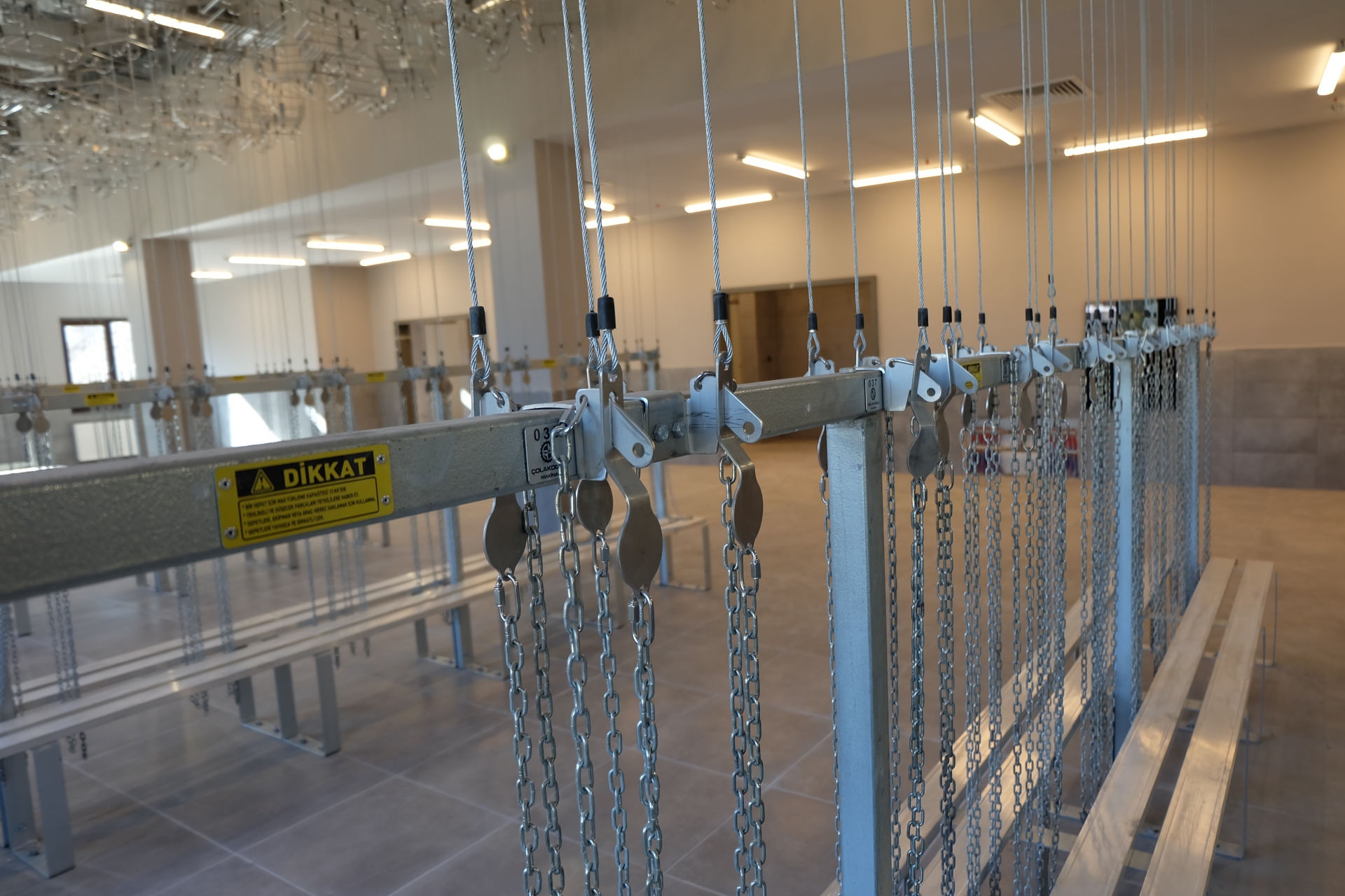 In this way, the changing basket system; The bright and spacious dressing rooms offer an open space, a hygienic, safe and secure environment. All steel structure of the system, commissioning after installation and installation were provided by Çolakoğlu Makine.